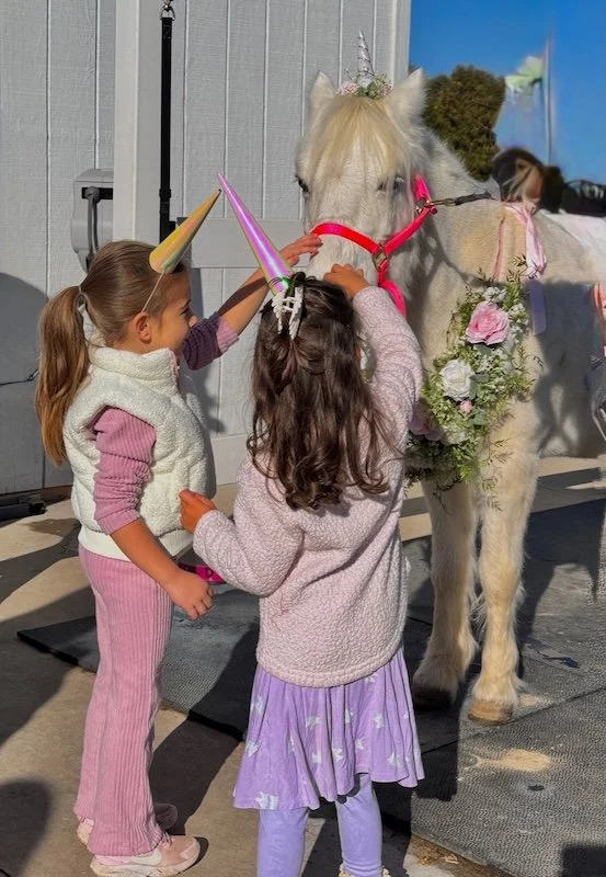Her mom threw a unicorn party fit for the storybooks—a white horse dressed as a unicorn, rides for all her little friends, and a few furry guests: bunnies, a cat, and laughter that carried through the air like confetti.